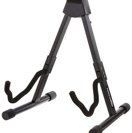 Search on AmazonAmazon Basics Adjustable Folding Guitar Stand, A-shape, Fully Assembled - For School Music Program, Concerts & Multiple Users, Black, 8.66 x 15.16 x 3.74 inches
