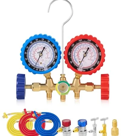 - ACCURATE MANIFOLD GAUGE SET: High-quality manifold gauges provide precise readings; Large viewing glass ensures clear refrigerant flow; Shock-resistant core maintains accuracy during transport or daily use