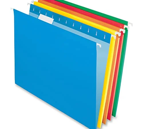 - 25 letter-size hanging file folders in assorted colors (5 each: Red, Orange, Yellow, Green, Blue); ideal for 8-1/2 x 11-inch documents