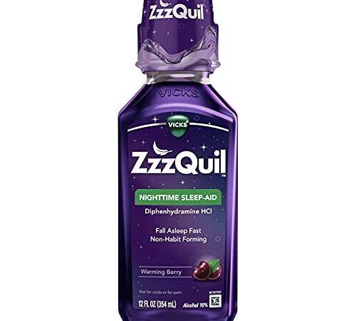 ZzzQuil, Sleep Aid, Nighttime Sleep Aid Liquid, 50 mg Diphenhydramine HCl, Fall Asleep Fast, Non-Habit Forming, Warming Berry Flavor, 12 FL OZ