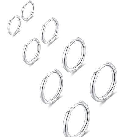- 5 Pair Silver Cartilage Hoop Earrings Set: Our simple, tiny hoop earrings for women and men include 6mm/6mm/8mm/8mm/10mm small silver hoop earrings. These earrings are suitable for the first hole, second hole, and third hole. Perfectly match your various...