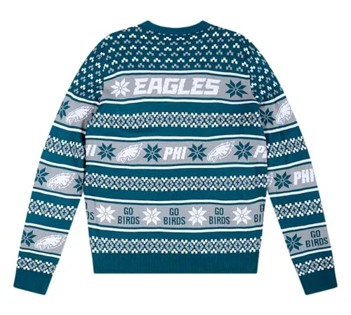 A common pitfall is assuming all 'sweaters' offer similar levels of warmth. For instance, the FOCO Philadelphia Eagles NFL Big Logo Ugly Sweater is made from knit acrylic, designed for substantial warmth. In contrast, the FOCO Men's NFL Printed Primary Logo Lightweight Holiday Sweater is 100% polyester. Users expecting the thick, insulating feel of an acrylic knit from a polyester printed sweater may be disappointed, particularly in colder climates.