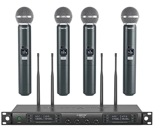- BEYOND-EXPECTATION WIRELESS PERFORMANCE: 4-channel UHF microfono inalambrico set features fixed frequencies at 541.9 MHz, 546.3 MHz, 561.6 MHz, and 568.65 MHz, ensuring an ultra-stable signal and eliminating unwanted distortion. The professional...